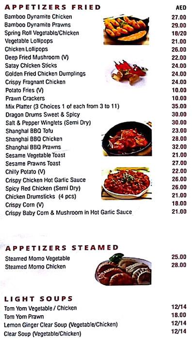 Menu At Bamboo Chinese Restaurant Sharjah